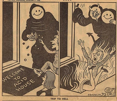 A drug-based Utopia was never achievable, of course. The Nazis tried to build an empire based on crystal meth, and that didn’t quite work out (although in fairness they seem to be making a comeback.) Heavy, long-term ecstasy usage can fry the brain in a way that leaves you in a state of anhedonia, unable to feel any happiness, locked out of heaven forever.